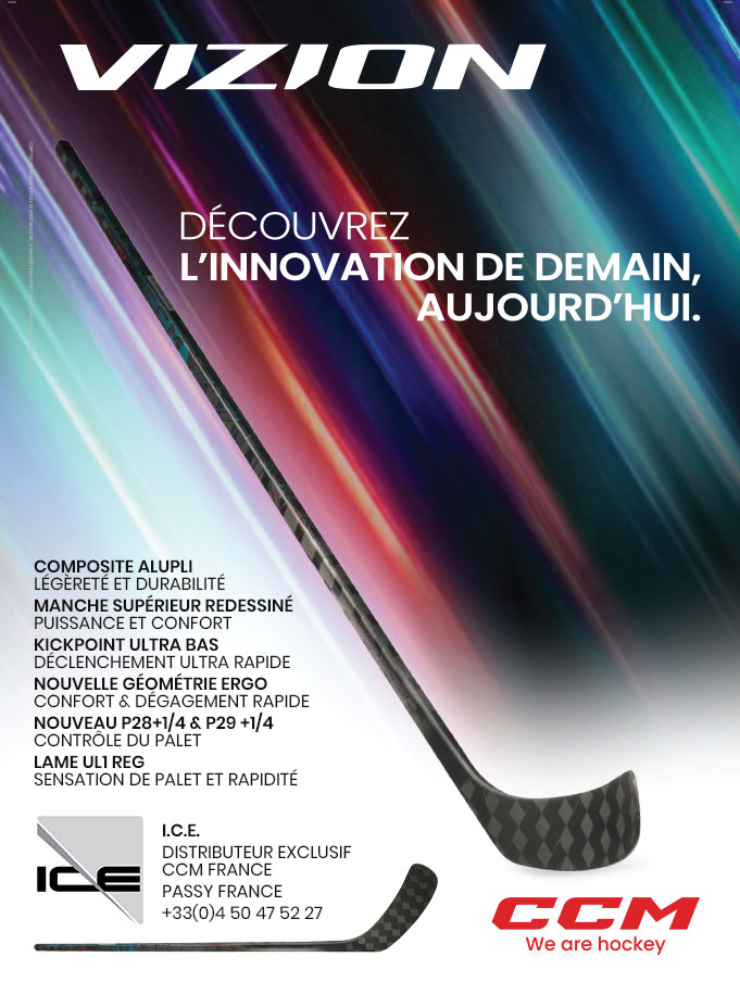 Fort de son expérience et de sa présence sur le terrain depuis sa création, la socciété I.C.E. distribue en exclusivité France les marques majeures que sont CCM Hockey, Fischer Hockey, Vaughn ou encore Edea, Mondor, Centurion, +Watt, etc.